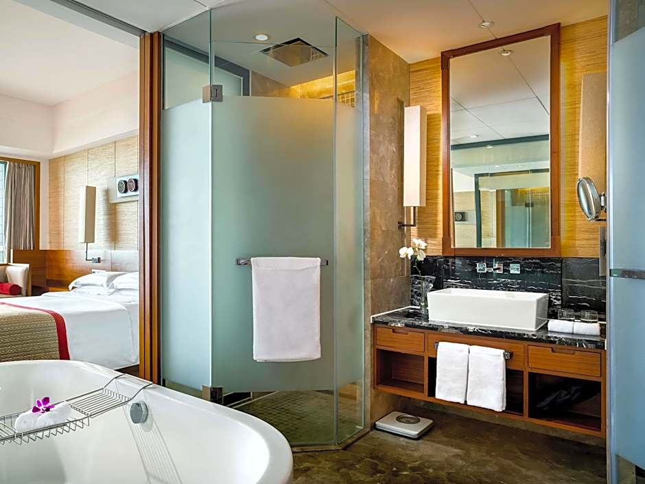 Offering ocean views from its private balcony, room features Southeastern-Asian and Chinese-style decor. A 42-inch flat-screen cable TV, tea/coffee making facilities and an private bathroom with a shower and a bathtub are provided.